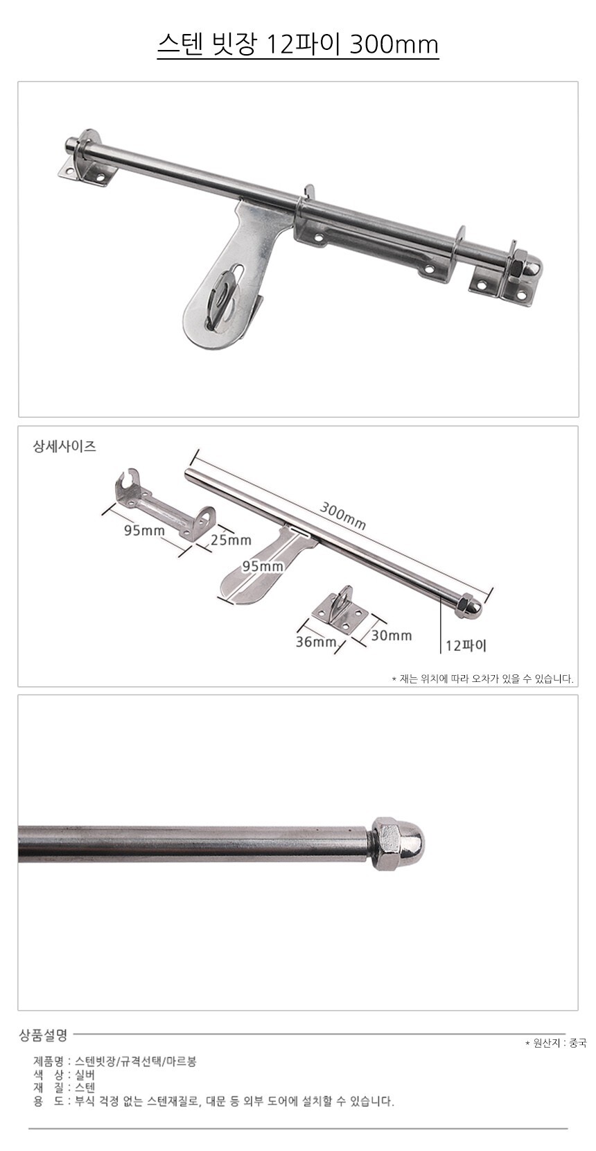 스텐 빗장 12파이 300mm 빗장 잠금쇠 DIY 빗장고리 오도시