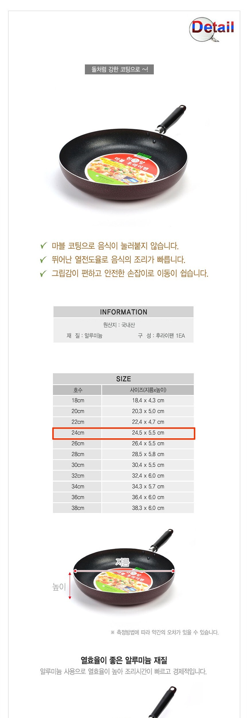 원앙 마블 후라이팬 24호 후라이팬 코팅후라이팬 프라이팬 일반후라이팬 원앙후라이팬