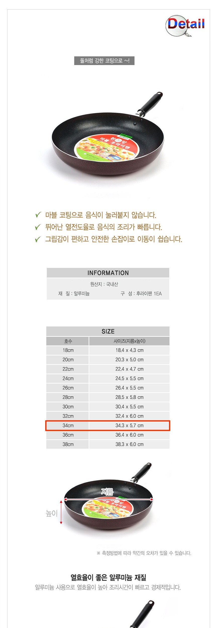 원앙 마블 후라이팬 34호 후라이팬 코팅후라이팬 프라이팬 일반후라이팬 원앙후라이팬 이미지/