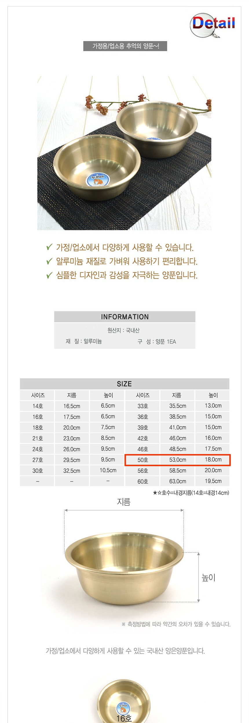 국내산 양은 양푼이 50호 양은양푼 믹싱볼 비빔그릇 무침볼 노란그릇 밥그릇 옛날그릇 양푼이
