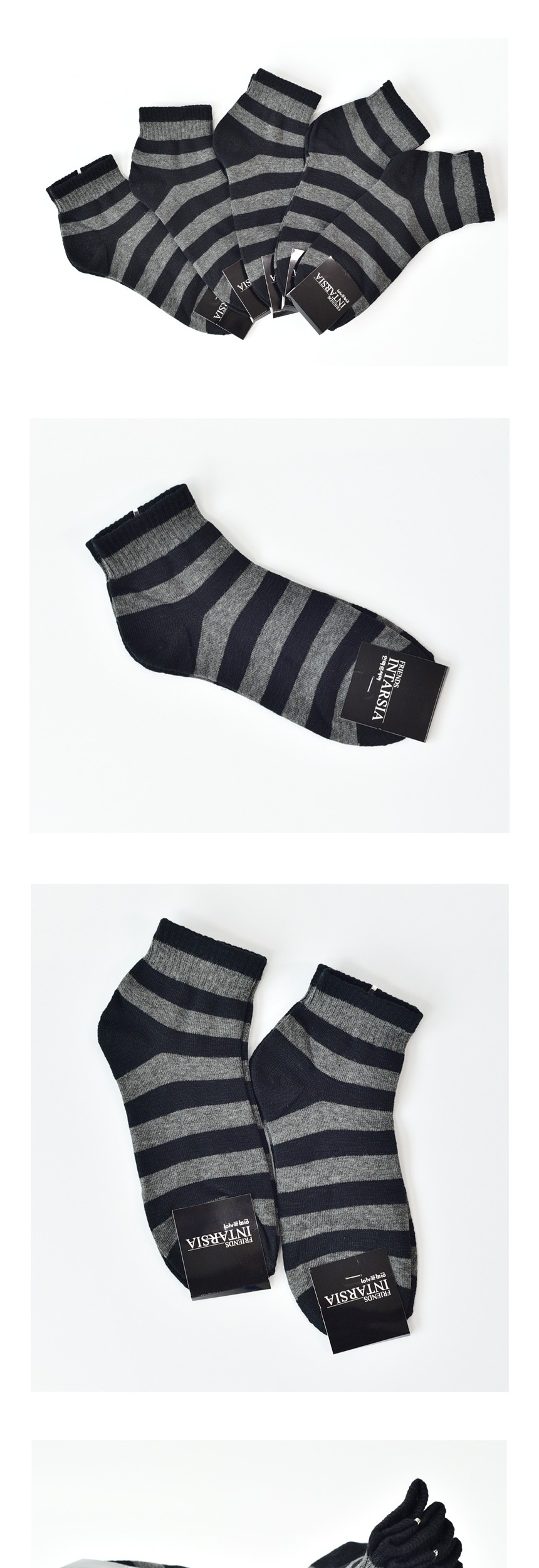 굵은 가로줄무늬 남자 단목양말 회검 5켤레 신사양말 남성양말 정장양말 남성장목양말 예쁜양말 이미지/