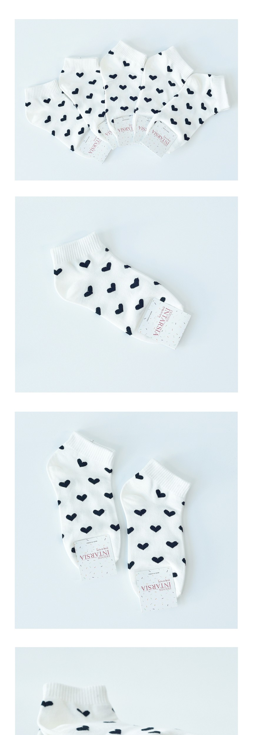 하트무늬 여자 단목양말 흰색 5켤레 단목양말 발목양말 여성발목양말 발목 단목 예쁜양말 패션 이미지/