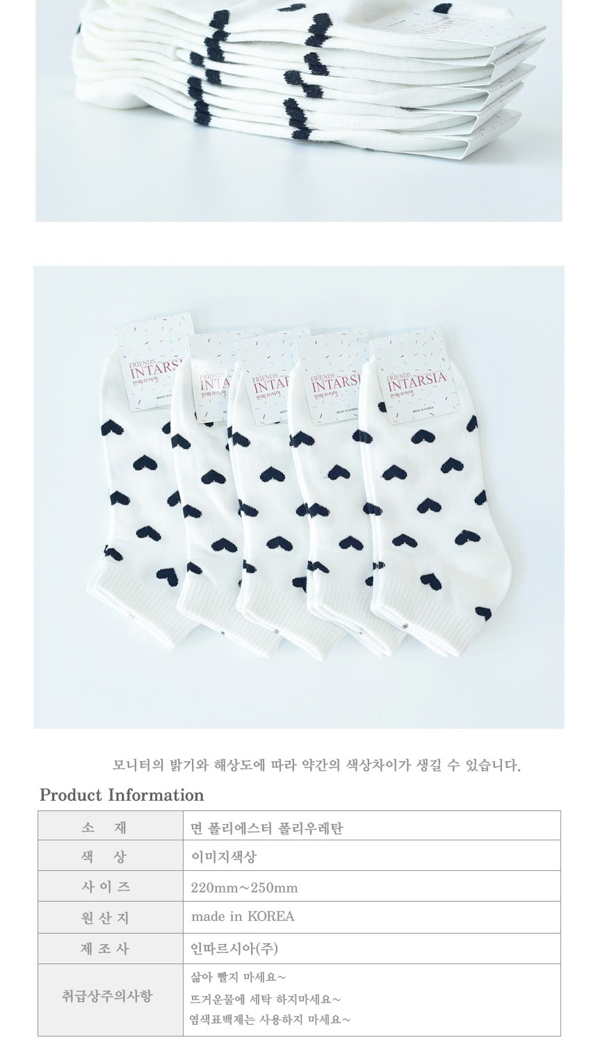 하트무늬 여자 단목양말 흰색 5켤레 단목양말 발목양말 여성발목양말 발목 단목 예쁜양말 패션
