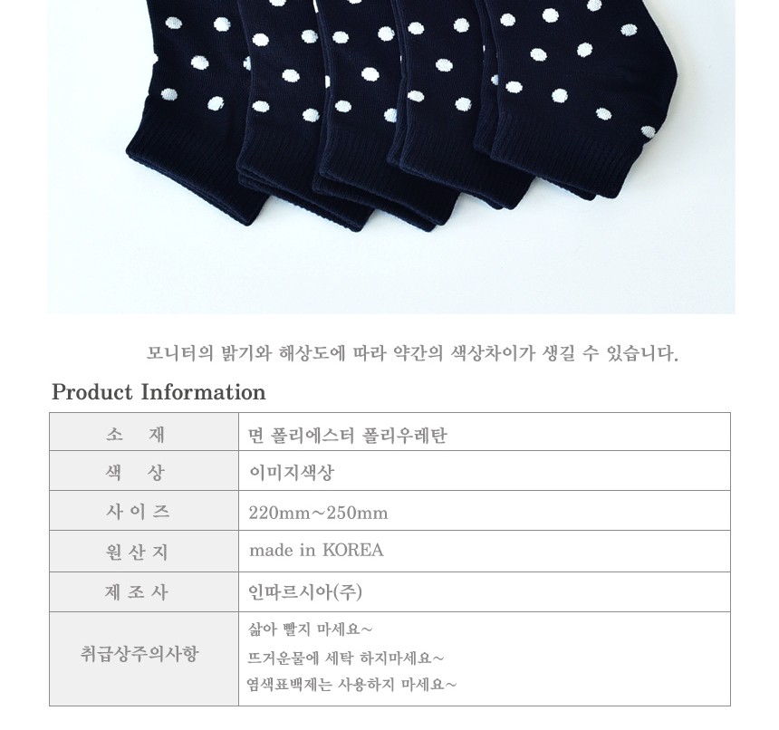 땡땡이 여자 발목양말 다크네이비 5켤레 발목양말 여자양말 기본양말 여성발목양말 예쁜양말 패