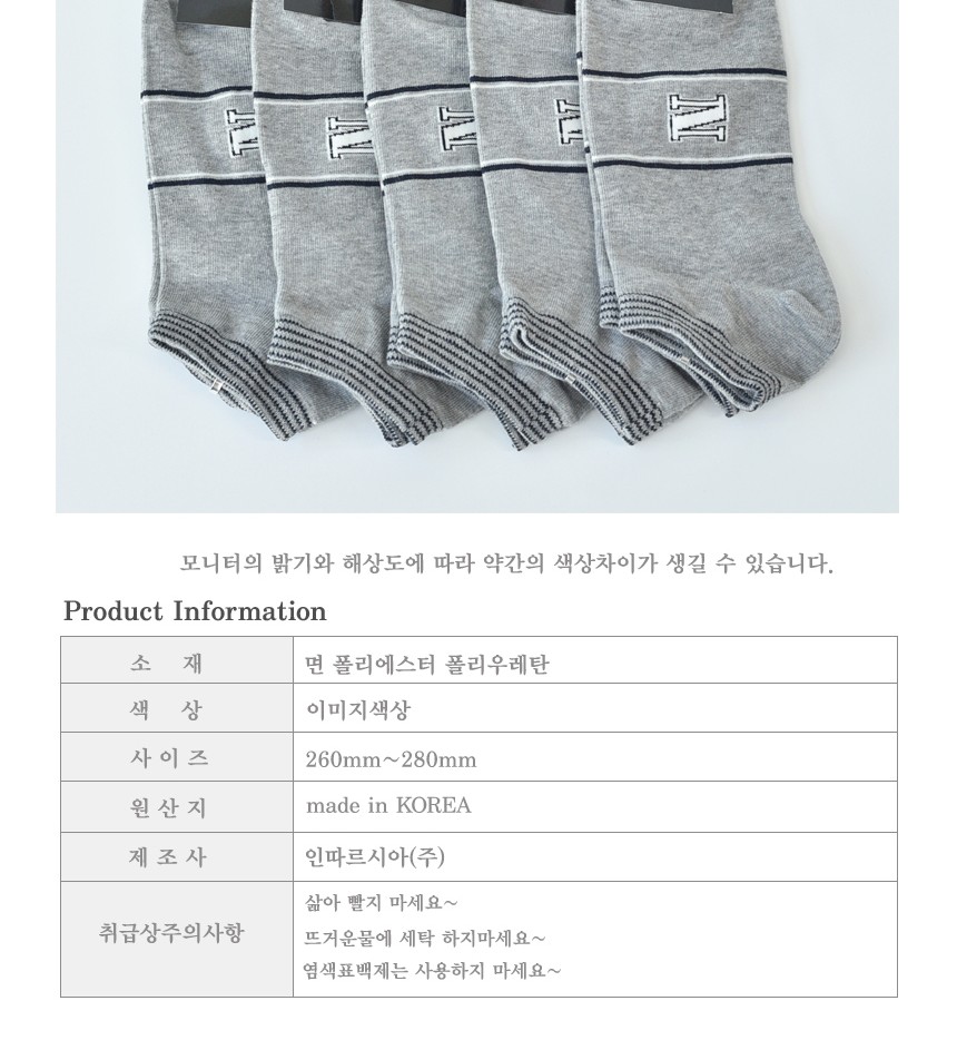 발목포인트 N 남자 발목양말 그레이 5켤레 발목양말 남성양말 기본양말 남성발목양말 예쁜양말 이미지/