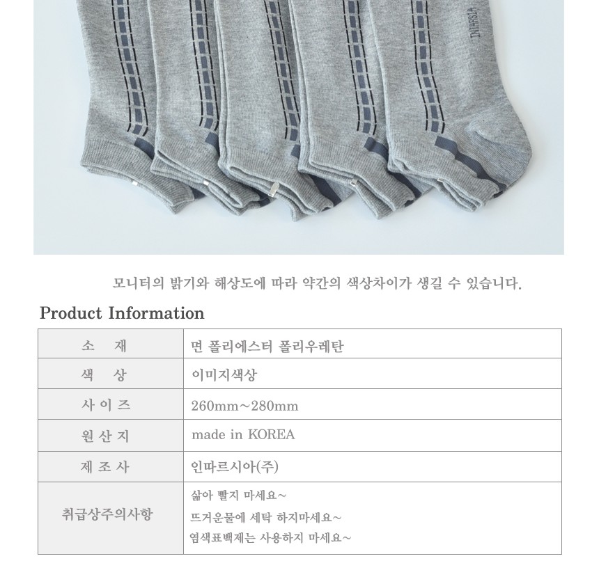 띠라인 남자 발목양말 그레이 5켤레 발목양말 남성양말 기본양말 남성발목양말 예쁜양말 패션양 이미지/