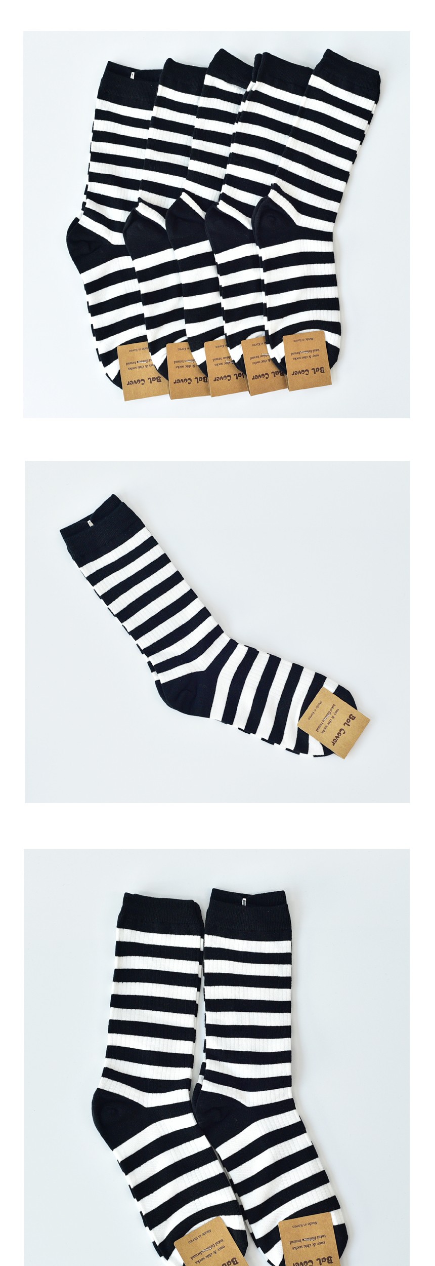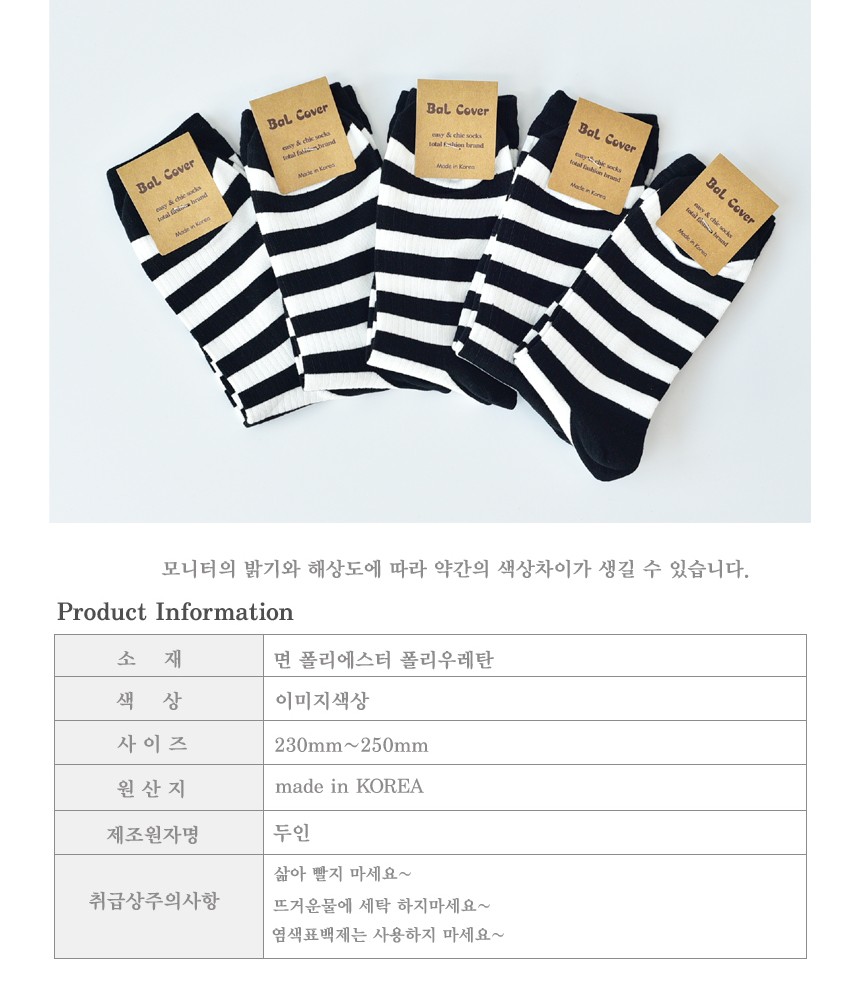 줄무늬골지 여자 장목양말 검흰 5켤레 장목양말 여자양말 골지양말 여자장목양말 예쁜양말 패션