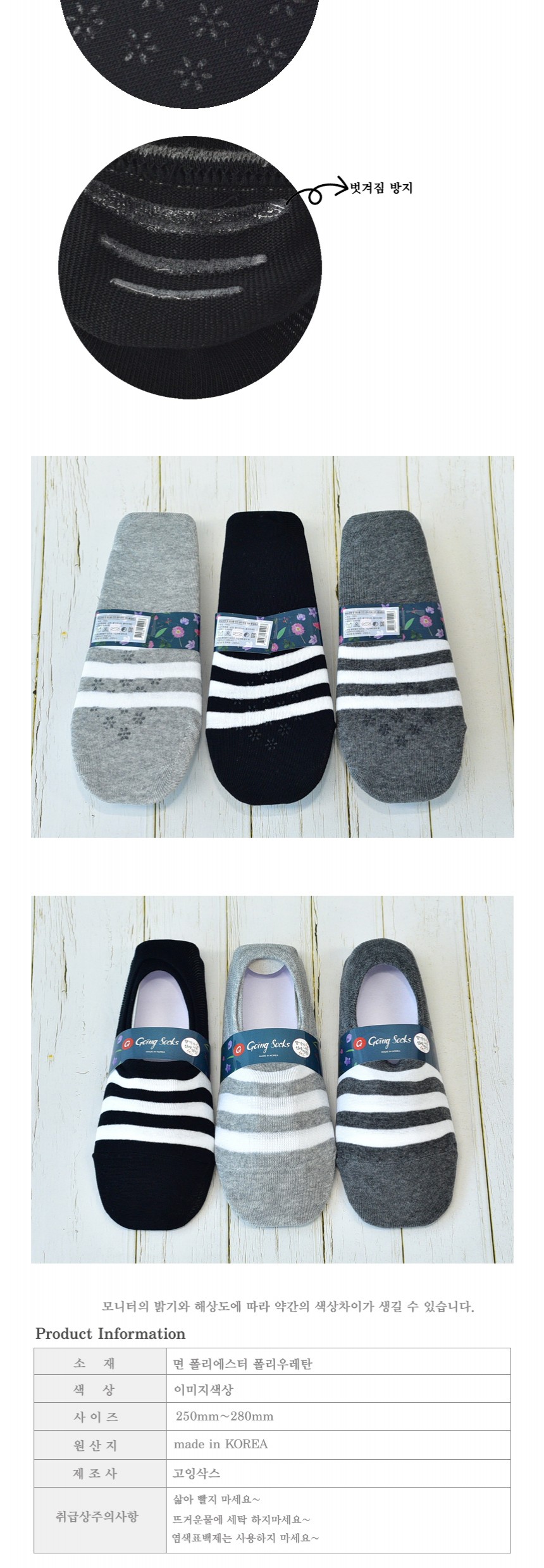 남성 페이크삭스 가로줄 덧신 랜덤 3켤레 페이크삭스 덧버섯 실리콘양말 덧신 안벗겨지는양말 이미지/
