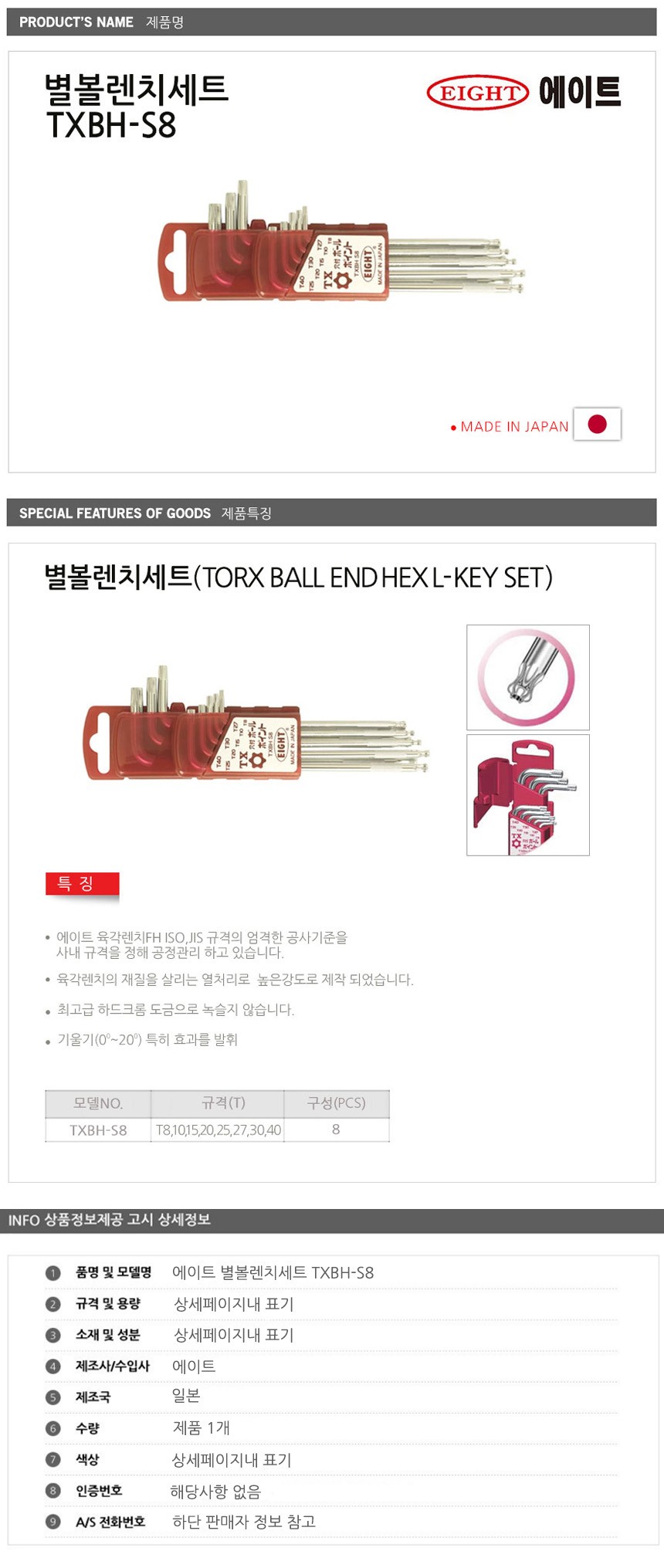 에이트 별볼렌치세트 TXBH-S8 공구 수공구 수작업공구 수작업 작업공구 이미지/