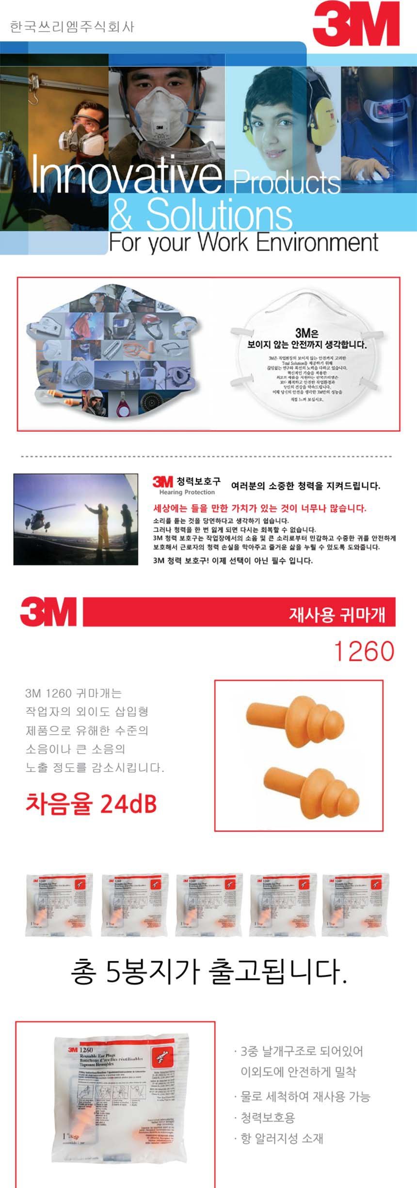 3M 재사용 가능 귀마개 1260 5세트 묶음 3M귀마개 공부귀마개 방음귀마개 소음방지 소 이미지/