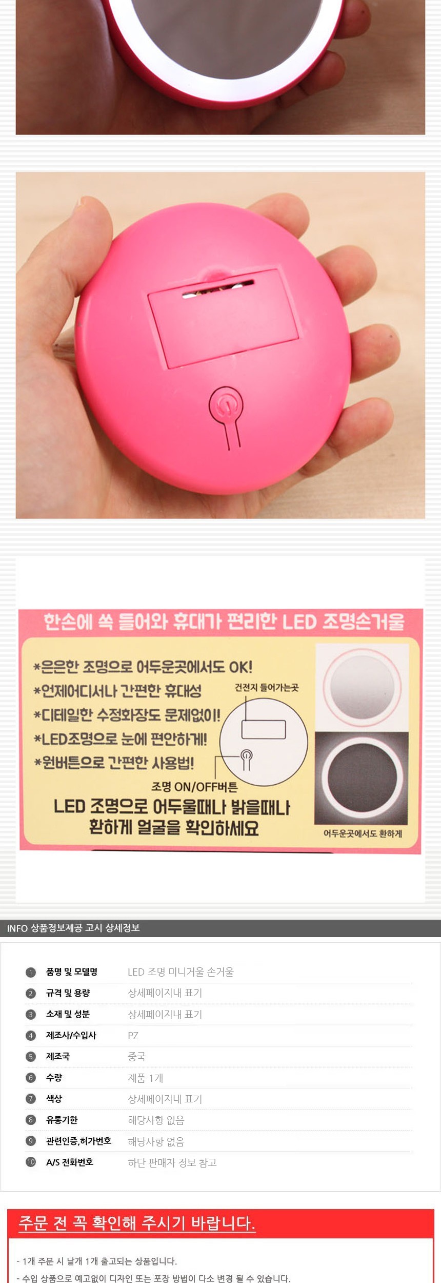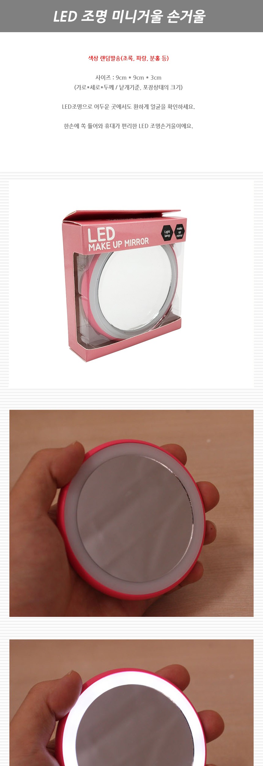 LED 조명 미니거울 손거울 원형손거울 원형거울 화장대거울 핸드미러 미니손거울