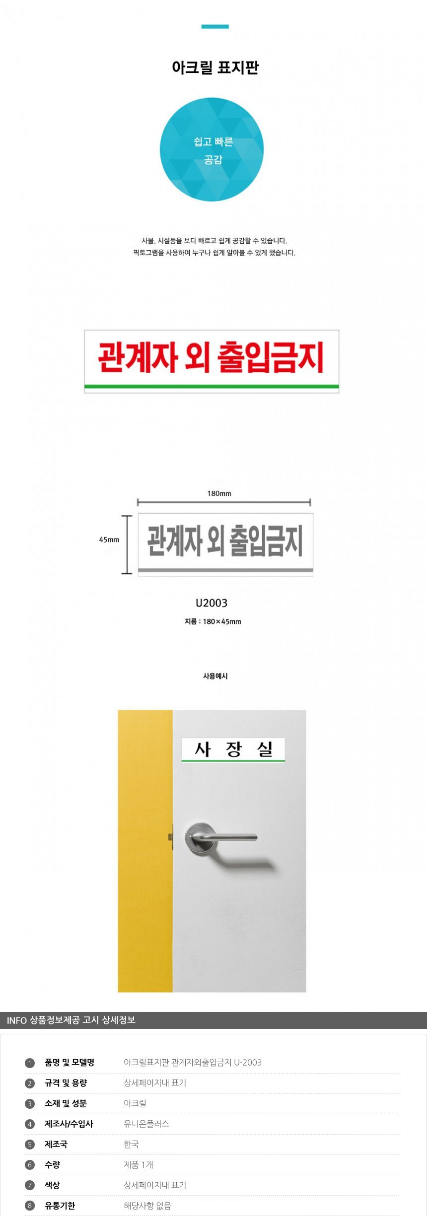 아크릴표지판 관계자외출입금지 U-2003 180x45x2mm 사인 표찰 안내판 팻말 쇼케