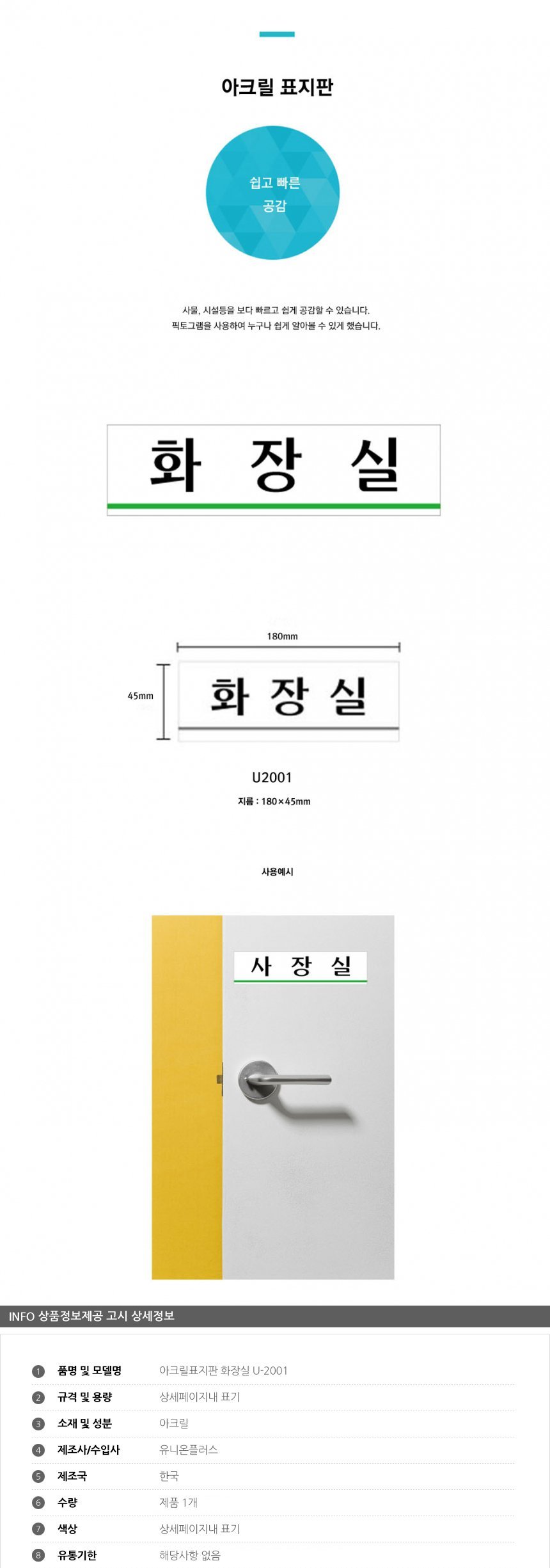 아크릴표지판 화장실 U-2001 180x45x2mm 사인 표찰 안내판 팻말 쇼케이스 디자