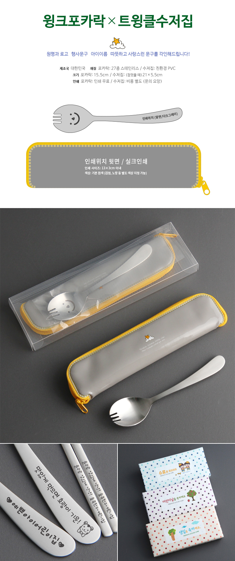 어린이 윙크포카락 (수저집 포함) x무료인쇄 /제품인쇄 무료 (50개 이상 구매. 단일문구