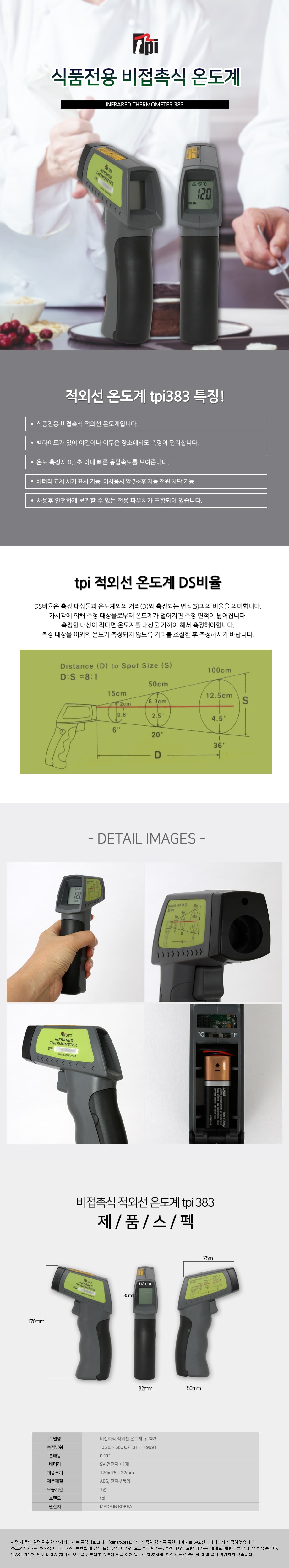 레이저온도계 적외선온도계 TPI-383 이미지/