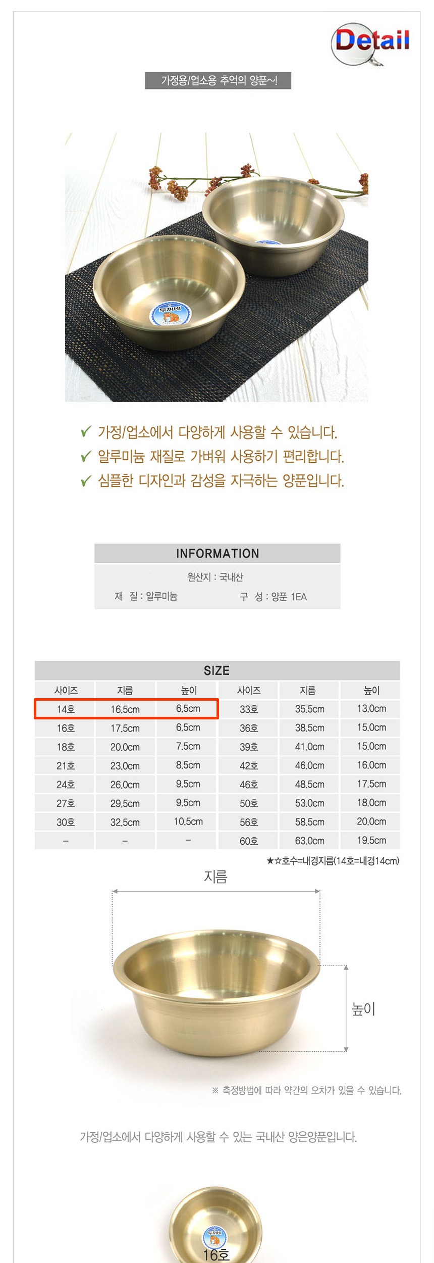 국내산 양은 양푼이 14호 양은양푼 믹싱볼 비빔그릇 무침볼 노란그릇 밥그릇 옛날그릇 양푼이