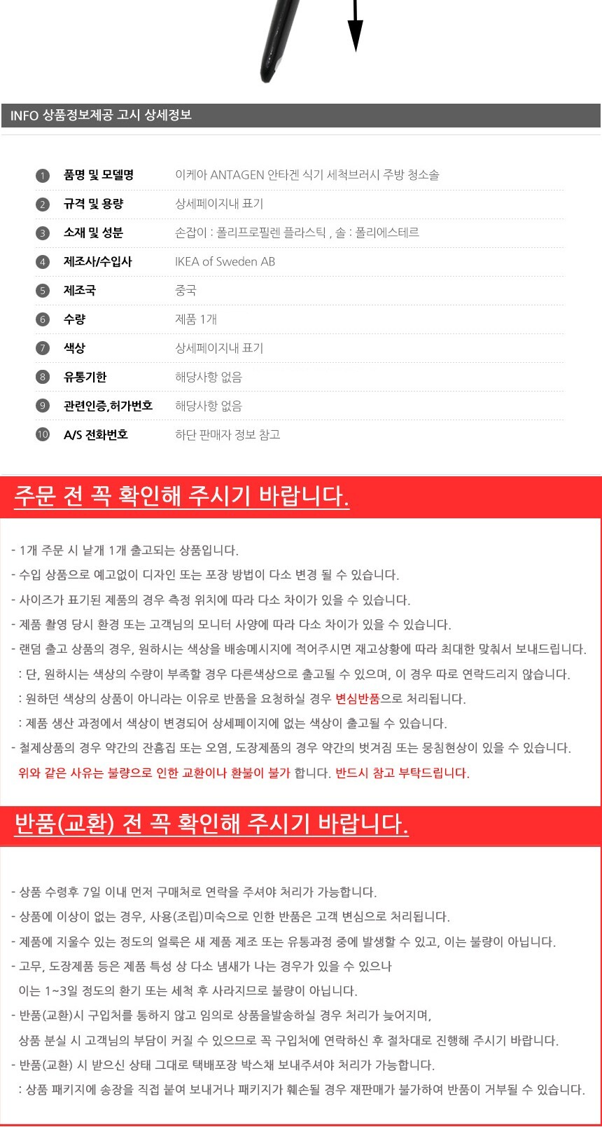 이케아 ANTAGEN 안타겐 식기 세척브러시 주방 청소솔 주방 청소 인테리어 솔 브러쉬 식