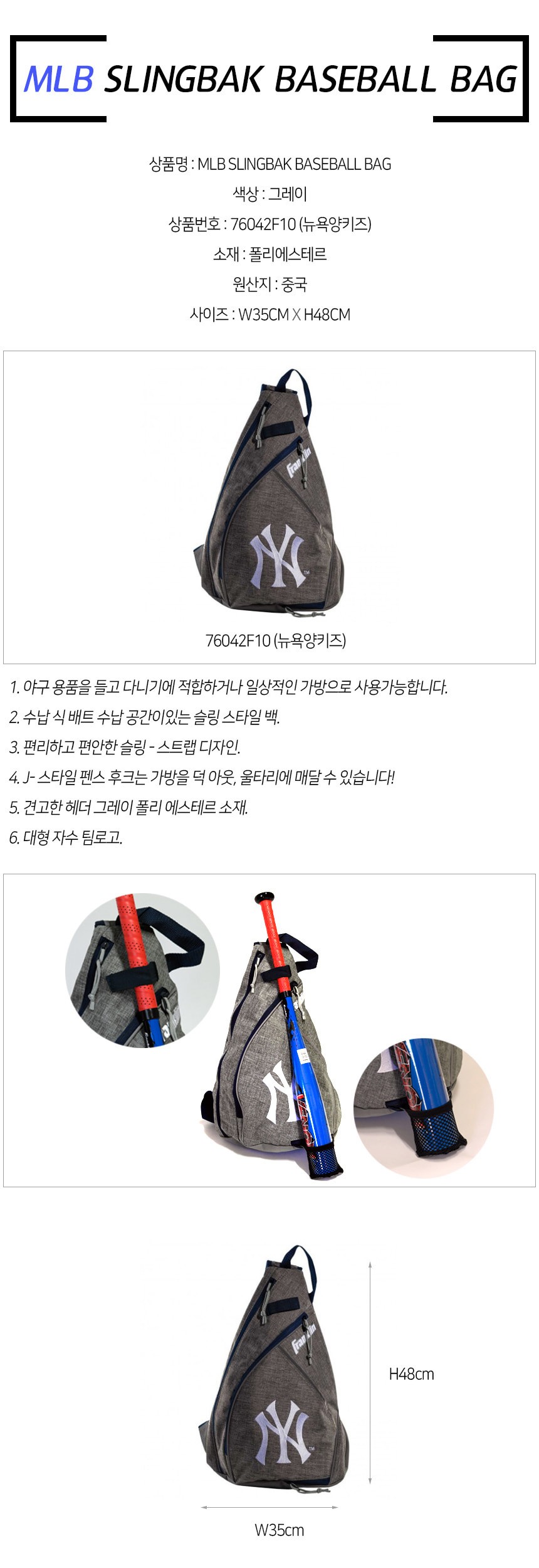 프랭클린 뉴욕양키스 슬링백 야구가방 야구 연습 스포츠 운동 헬스