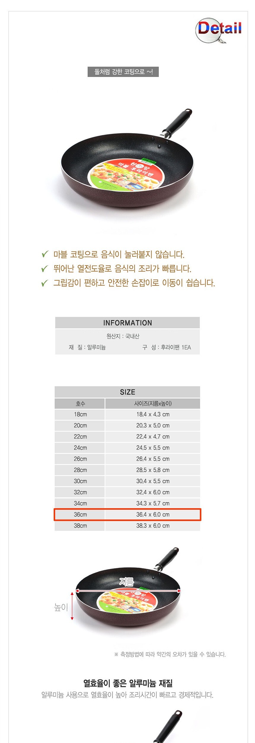 원앙 마블 후라이팬 36호 후라이팬 코팅후라이팬 프라이팬 일반후라이팬 원앙후라이팬