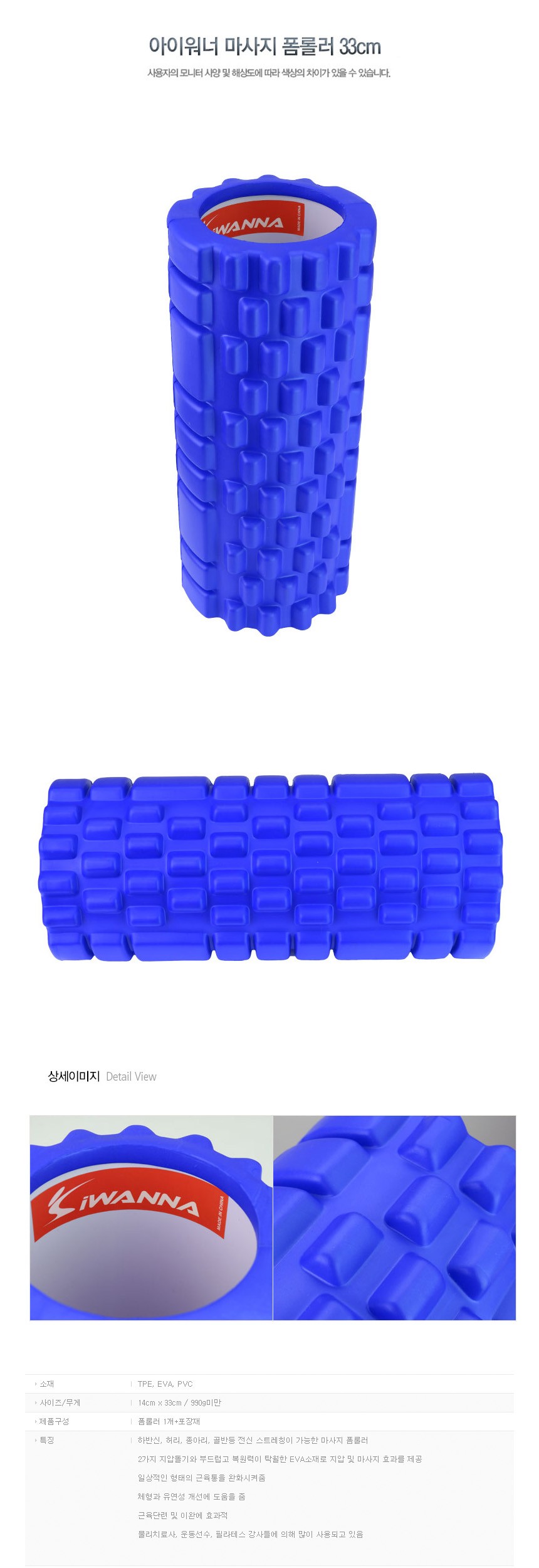 아이워너 마사지 폼롤러 33cm 블루 운동 기구 스트레칭 헬스 홈트