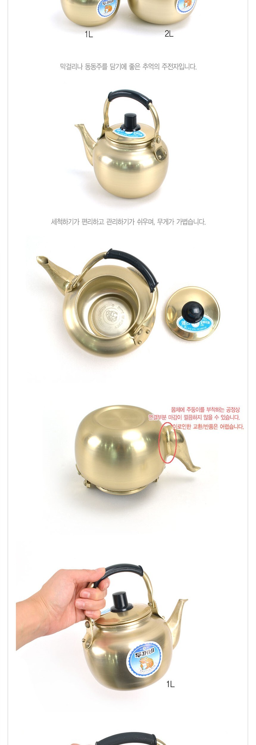 양은 막걸리 주전자 2호 2리터 주전자 양은주전자 황주전자 노란주전자 추억의주전자 시골주전 이미지/