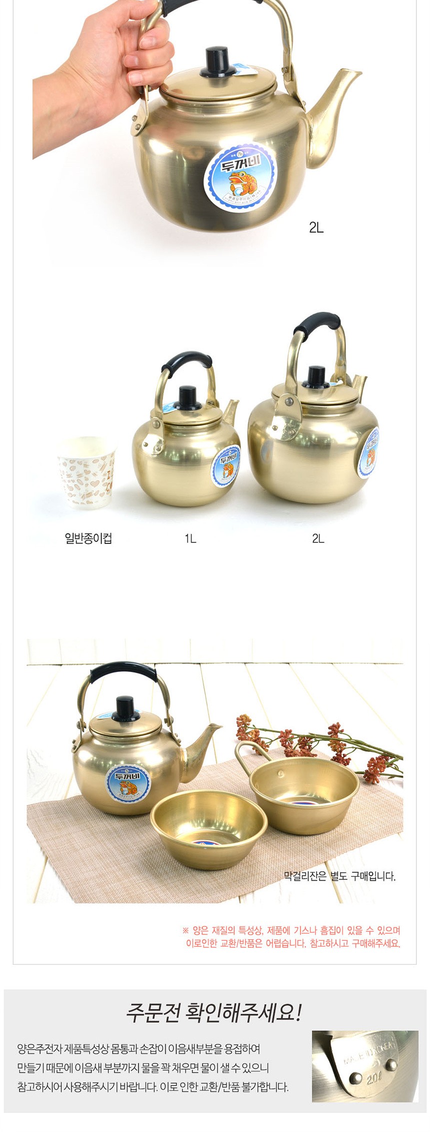 양은 막걸리 주전자 2호 2리터 주전자 양은주전자 황주전자 노란주전자 추억의주전자 시골주전