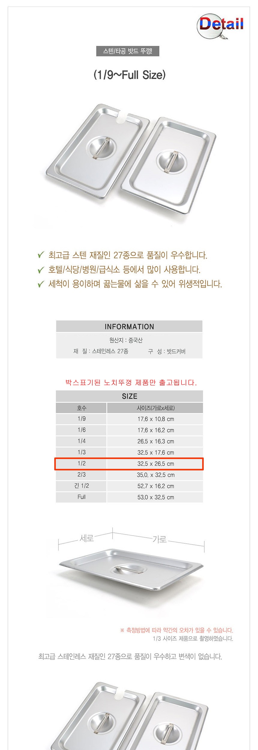 업소용 스텐 밧드 뚜껑 2분의1 노치타공 밧드뚜껑 반찬통뚜껑 업소용반찬통뚜껑 업소용보관용기