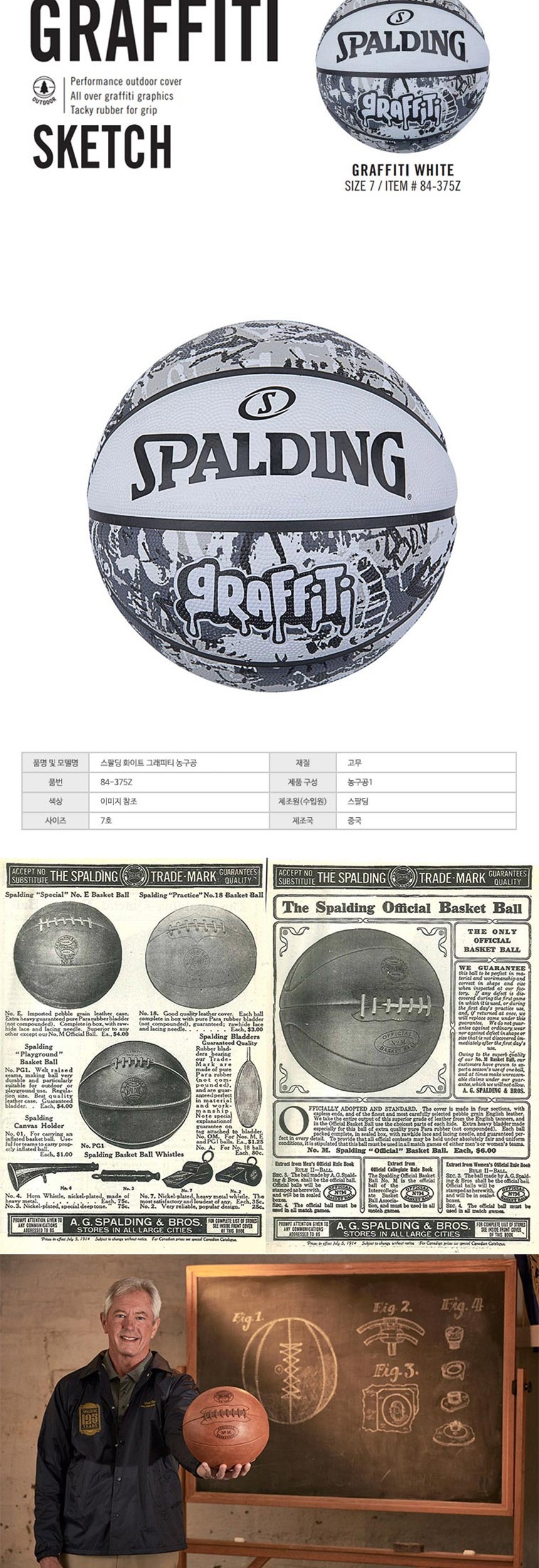 스팔딩 화이트 그래피티 농구공 7호 농구 농구용품 스포츠 운동 구기 이미지/