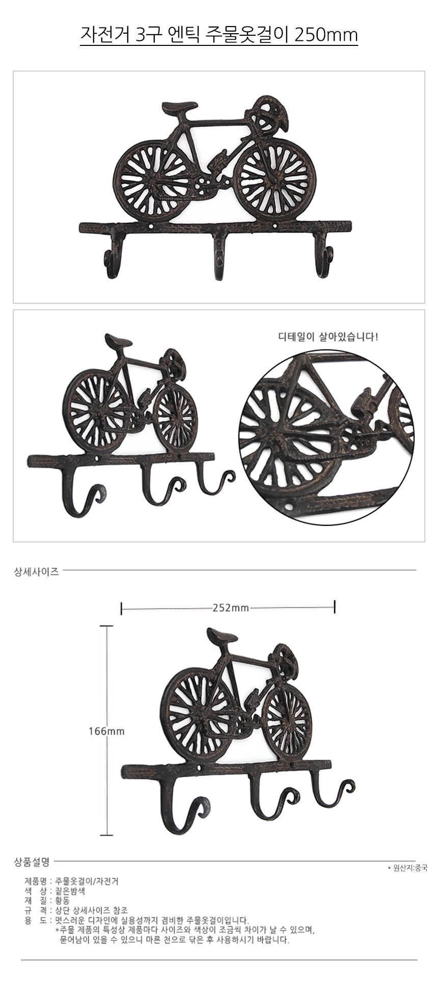 자전거 3구 엔틱 주물옷걸이 250mm 옷행거 옷정리 행거 수납 정리