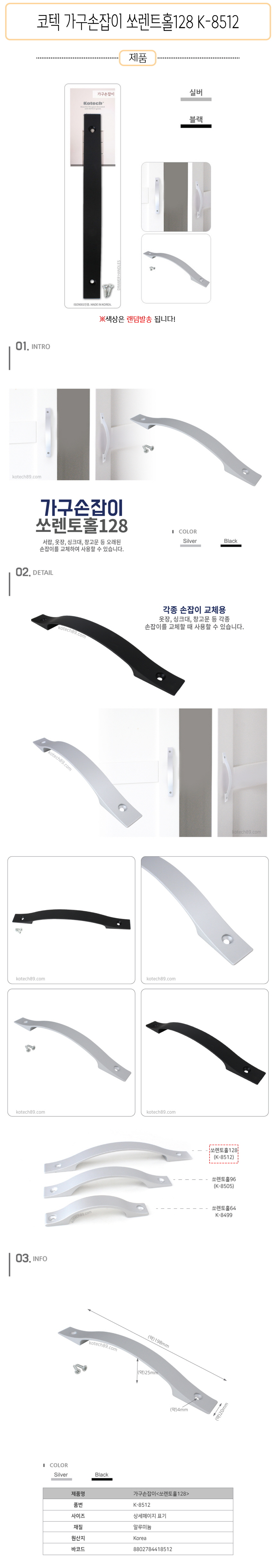 코텍 가구손잡이 쏘렌트홀128 K-8512-D 이미지/