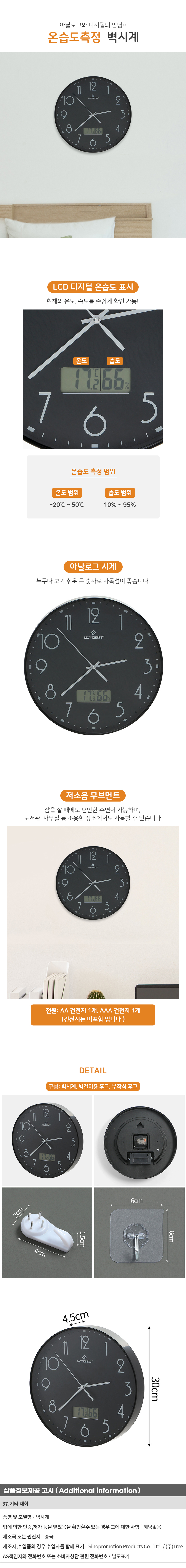 라이프홈 온습도측정 벽시계 모던 습도 집들이벽시계 이미지/