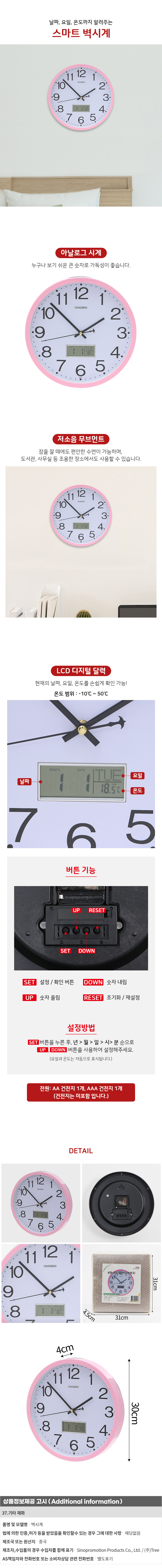스마트 온도측정 날짜 벽시계 거실 모던 심플벽시계 이미지/
