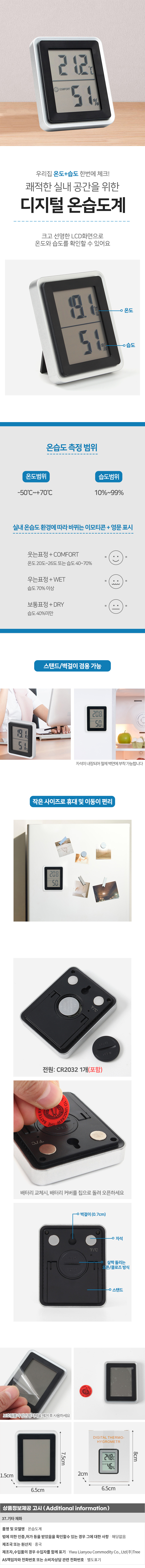 베이직 디지털 온습도계 자석 탁상 벽걸이온습도계 이미지/