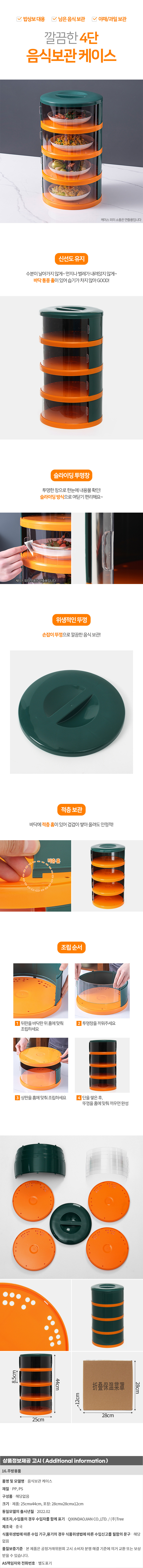 신선쿡 4단 음식보관 케이스(오렌지+그린) 간식보관 이미지/