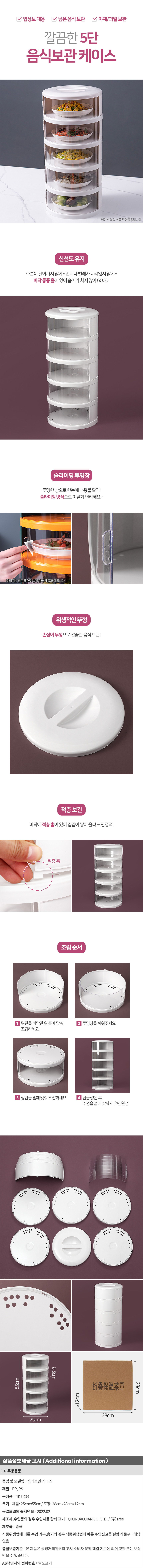 신선쿡 5단 음식보관 케이스(화이트) 덮개 간식보관 이미지/
