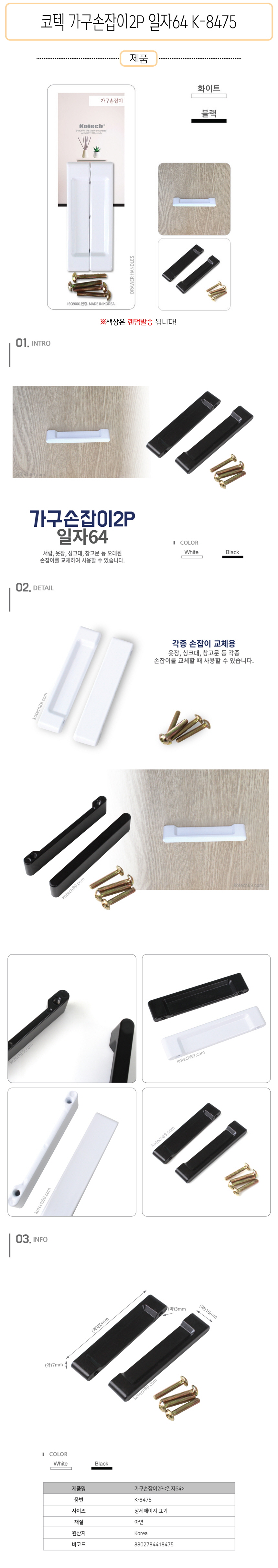 코텍 가구손잡이 2P 일자형64 K-8475-D