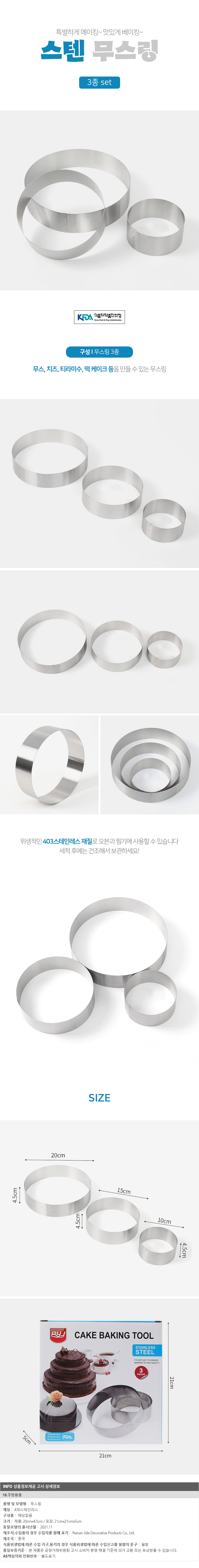 홈베이킹 스텐 무스링 3종세트(원형) 모양 떡틀 이미지/