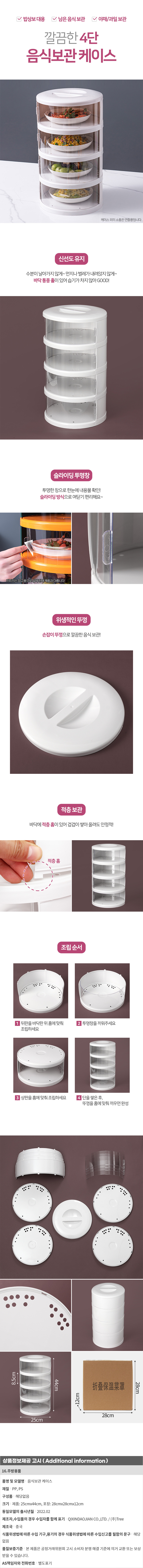 신선쿡 4단 음식보관 케이스(화이트) 반찬덮개 커버