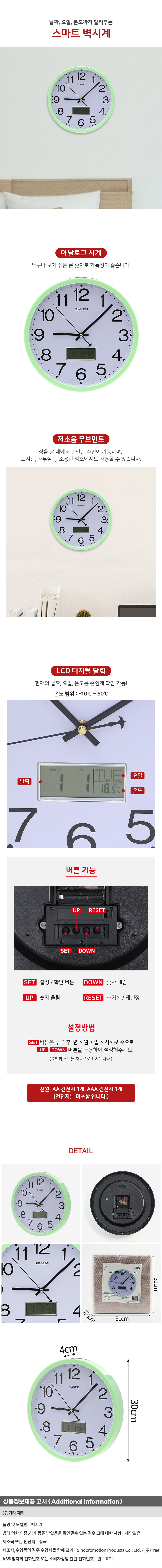 스마트 온도측정 날짜 벽시계 저소음 집들이벽시계 이미지/