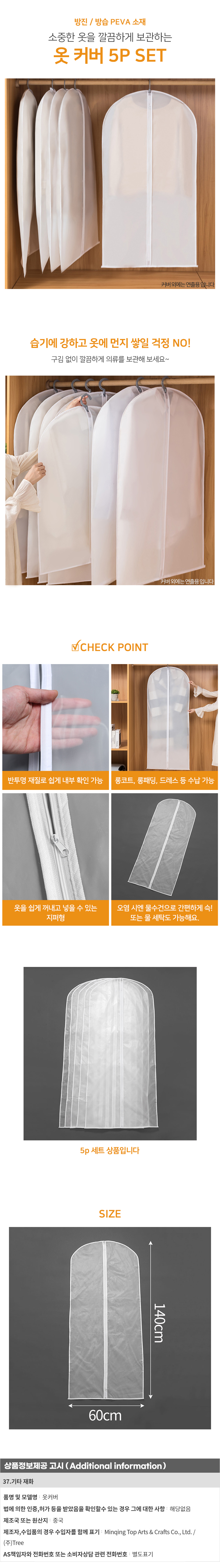 PEVA 반투명 옷커버 5p세트(140cm) 롱패딩 의류덮개