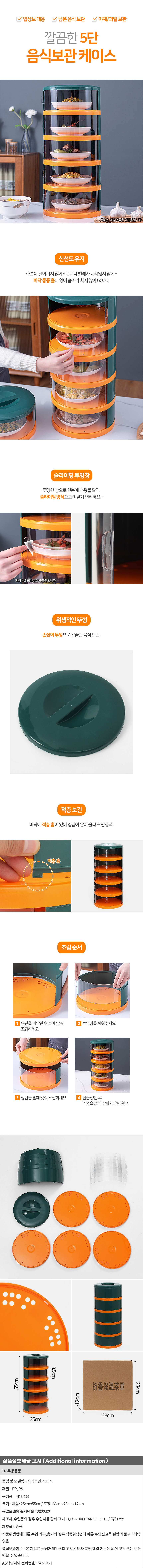 신선쿡 5단 음식보관 케이스(오렌지+그린) 푸드커버 이미지/