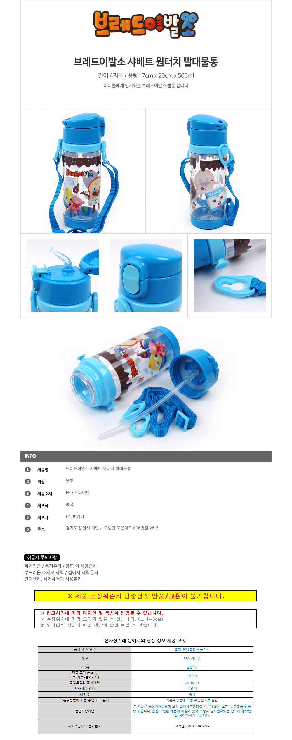 피앤디 브레드이발소 샤베트 원터치 빨대물통/BK
