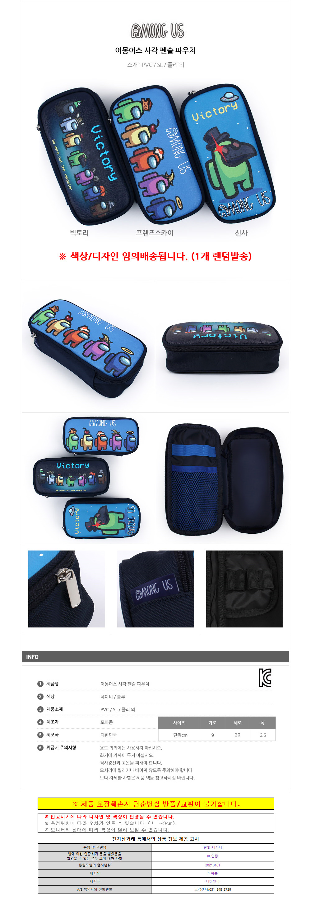 어몽어스 사각 펜슬 파우치 블루(랜덤1개)/BK 이미지/