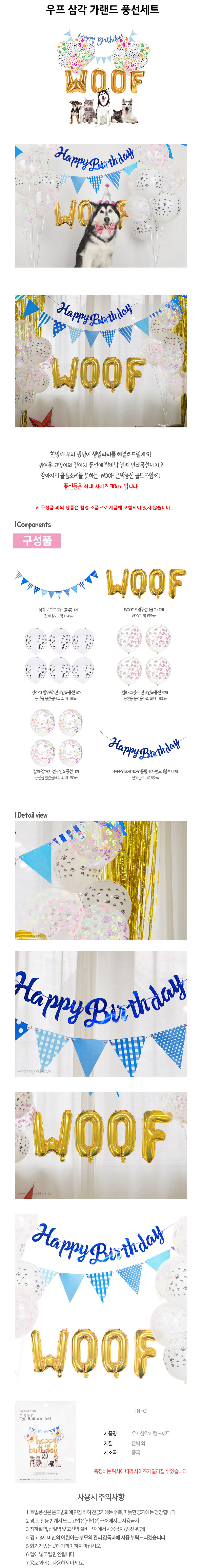 해피파티 펫 이벤트 생일 우프 삼각 가랜드 풍선세트/BK 이미지/