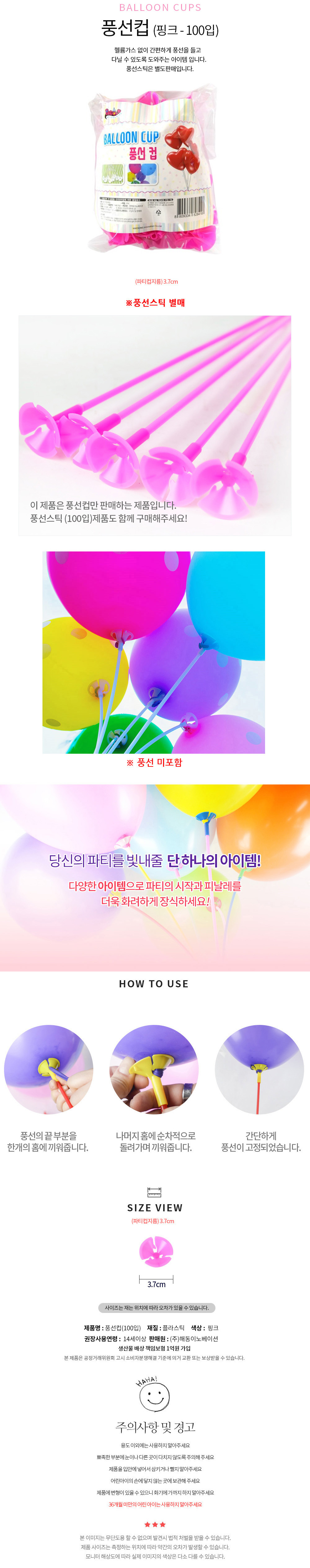 해피파티 이벤트 풍선컵(핑크)(100개입)(풍선스틱 별매)/BK 이미지/