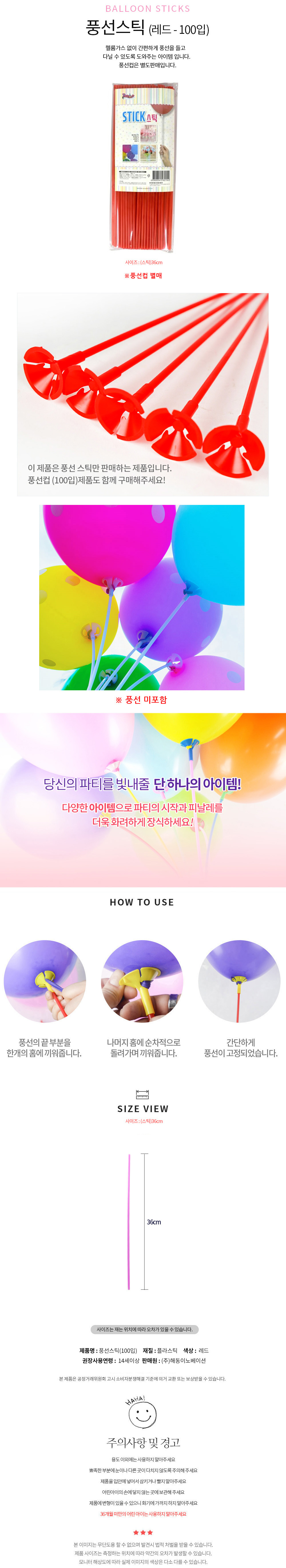 해피파티 이벤트 풍선스틱(레드)(100개입)(풍선컵 별매)/BK 이미지/