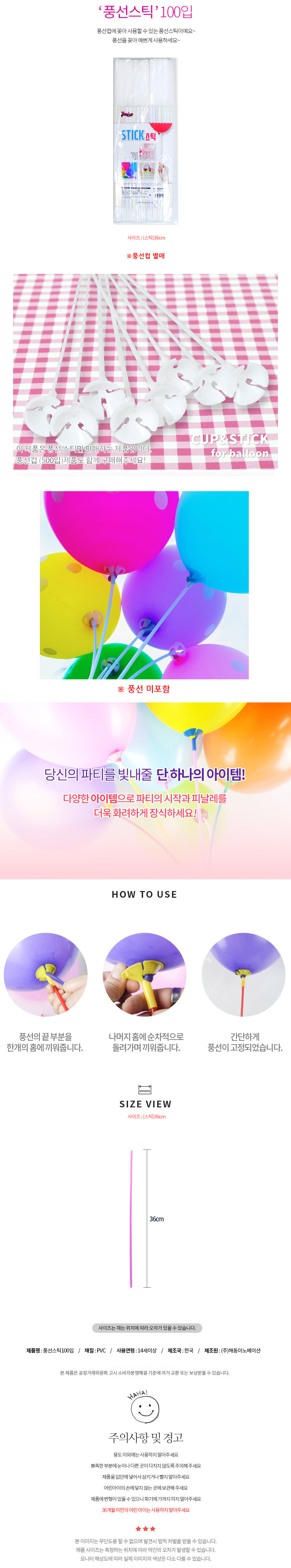 해피파티 이벤트 풍선스틱(화이트)(100개입)(풍선컵 별매)/BK 이미지/