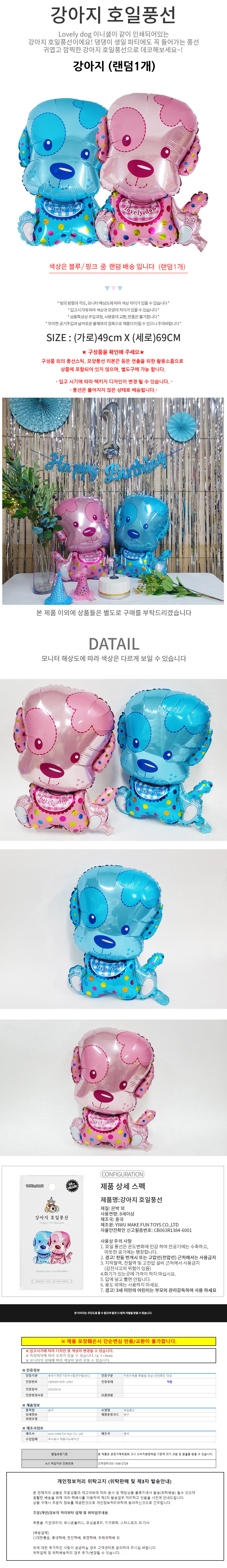 해피파티 펫 이벤트 생일파티 풍선 강아지(랜덤1개)/BK 이미지/