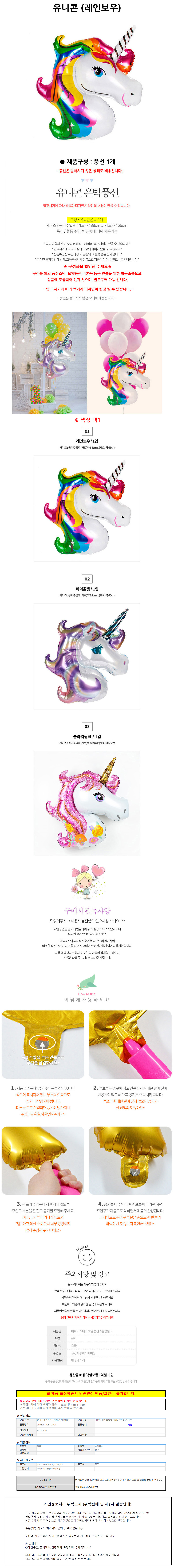 해피파티 이벤트 호일풍선 동물 유니콘(레인보우)/BK 이미지/