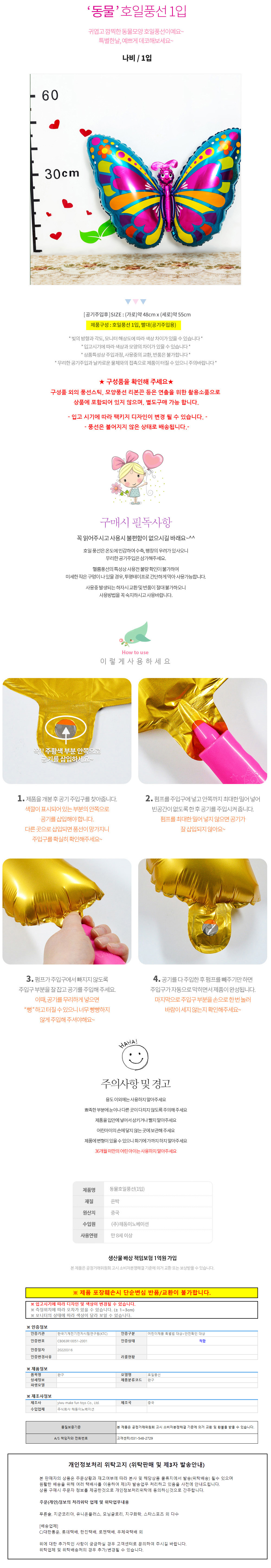 해피파티 이벤트 호일풍선 동물(나비)/BK 이미지/